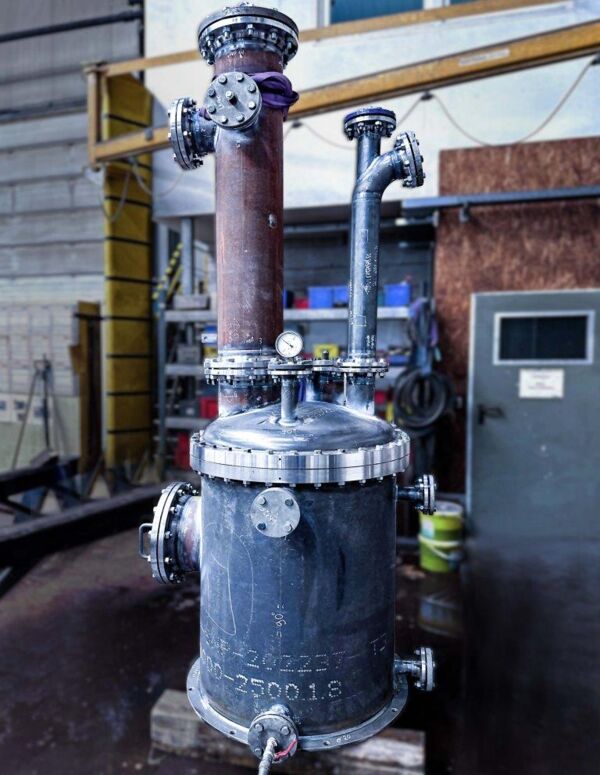 They are made of carbon steel and painted on the outside. At 2.80 metres in height and 800 mm in diameter, they’re relatively small, but sophisticated nevertheless. Each is coated on the inside with a special plastic called ECTFE, a polymer that, like Teflon, isn’t attacked by most acids and has good thermal resistance and non-stick properties. But why is the carbon steel tank lined with plastic and not made entirely of plastic in the first place? If a scrubber is normally operated at atmospheric pressure, it's a pressure vessel designed for three bar overpressure in this case.