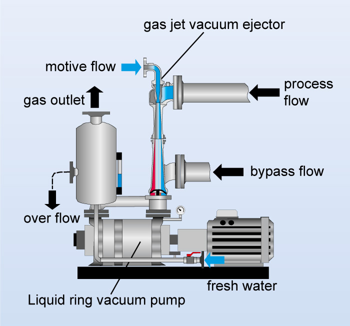 - as a pre-connected stage for liquid ring pumps to lower the suction pressure